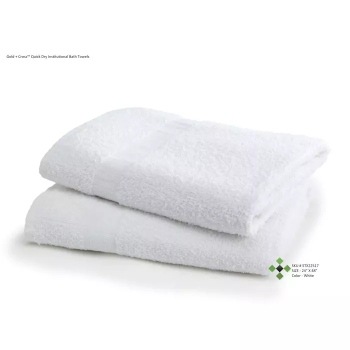 Gold + Cross™instituional towels are strong, durable and quick-dry . Build with 100% Cotton with 16 single construction that is made for durability and institutional laundering..These towels are perfect for the value conscience buyer who is aware of the costly problem of disappearing towels, yet wants to provide a quality towel for their guests while maintaining an attractive room rate. Heavier towels have thicker pile. Hand towels, washcloths and bath mats arrive compressed to save on shipping costs, simply wash to fluff.