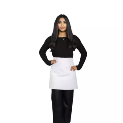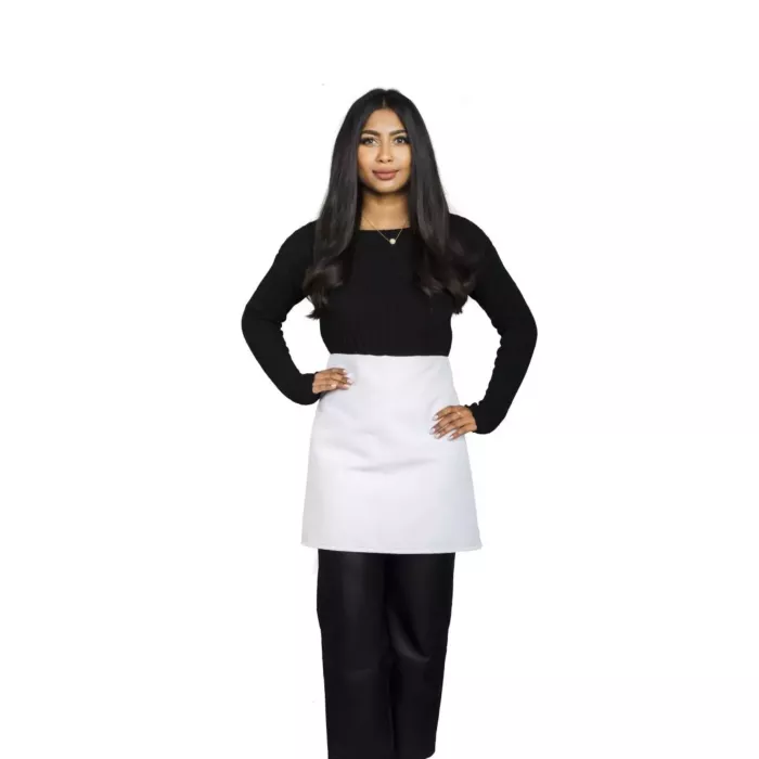This apron's convenient style will save time and money, increasing efficiency and cutting down wait time for customers. At the same time, the white color works to ensure a clean presentation, making it ideal for line cooks and sous chefs alike. Your staff will look sleek and professional in this apron.