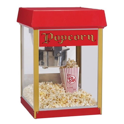 Features a large 4oz E-Z Kleen stainless steel kettle, heated corn deck, tempered glass windows, twin arm kettle suspension, and removable kettle.
