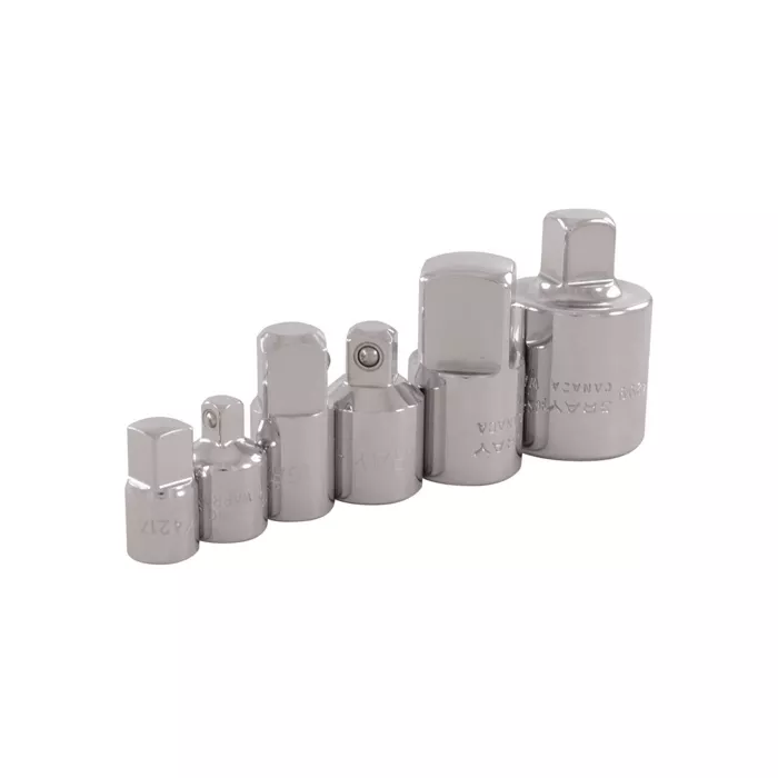 - Includes: 1/2" Female - 3/8" Male, 3/8" Female - 1/2" Male, 3/8" Female - 1/4" Male, 1/4" Female - 3/8" Male, 1/2" Female - 3/4" Male, and 3/4" Female - 1/2" Male adapters