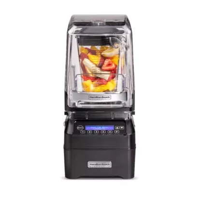 The full-featured Eclipse by Hamilton Beach Commercial has a 3 peak horsepower motor, touchpad controls, incorporates patented Wave~Action technology and is one of the quietest blenders in the world. Its 100 pre-programmed cycles, along with the ability to upload custom programs via memory card, ensure precise drink consistency between operators and locations. In addition, the most frequently used cycles can be assigned to the 5 program buttons for the most popular drinks.Quiet Blend technology and the advanced Quiet Shield enclosure provide high powered blends without disturbing customer conversations. The shield opens to a maximum height of only 22 inches / 56cm and turns the motor off when lifted. Convenient clips allow for easy removal of the shield for cleaning.