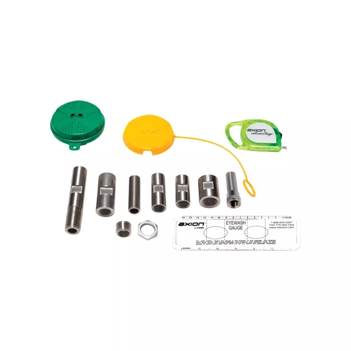 - Includes an Axion(R) MSR eye/face wash, connecting hardware options, eyewash testing gauge, tape measure, and an ANSI compliance checklist
