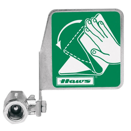 - Stainless steel push flag that operates a stay-open chrome-plated brass ball eyewash valve