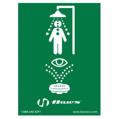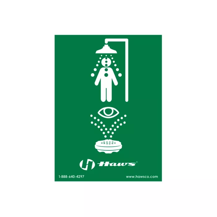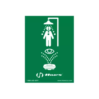 - Vertical, large, universal combination emergency shower and eyewash sign, made of green plastic