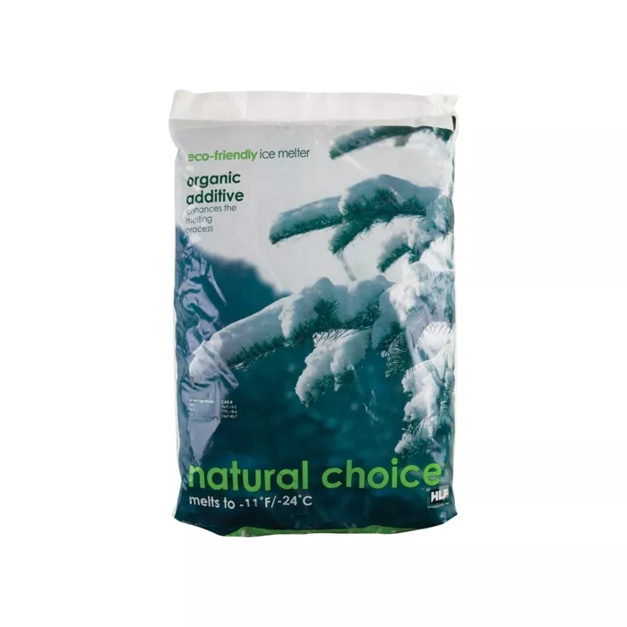 - All-natural ice melter with an organic additive that improves its performance