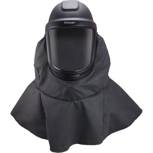 - Respiratory PAPR faceshield with hard hat protection and a premium, reusable shroud suitable for heavy chemical applications
