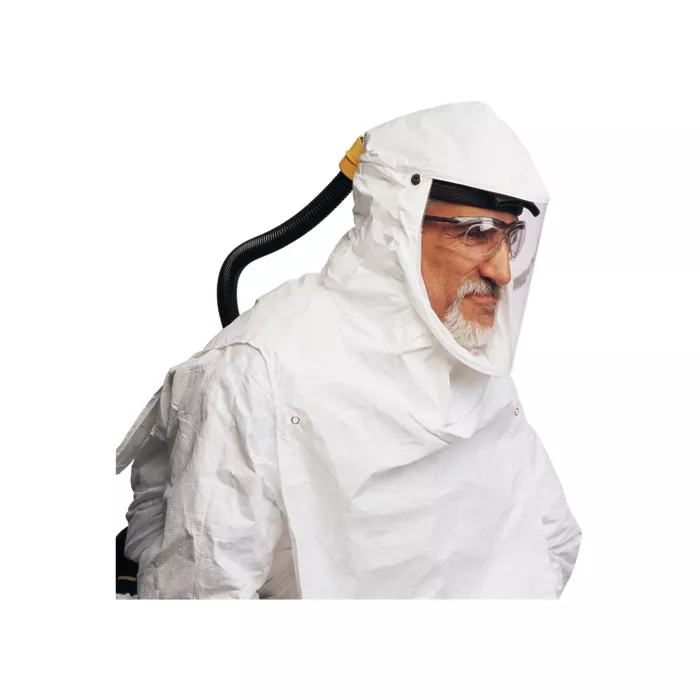 - Manifold directs air flow to the front lens, not in worker's eyes