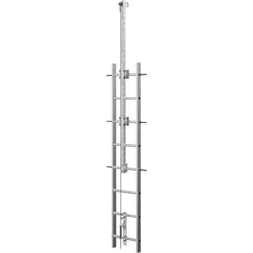 - Uninterrupted fall protection–automatically bypasses intermediate cable guides, keeping both hands free for climbing; travels smoothly along cable and locks instantly in the event of a fall