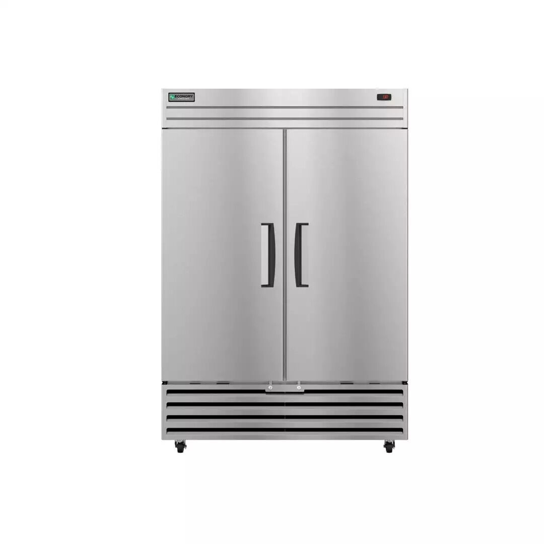 The EF2A-FS Economy Series upright two-section freezer with full stainless doors is ready to get the job done. The dependable 1/2 HP motor that powers the compressor in the bottom of this unit provides the cabinet with a continuous stream of cold air.