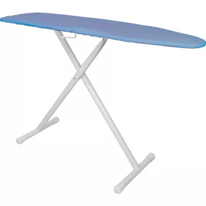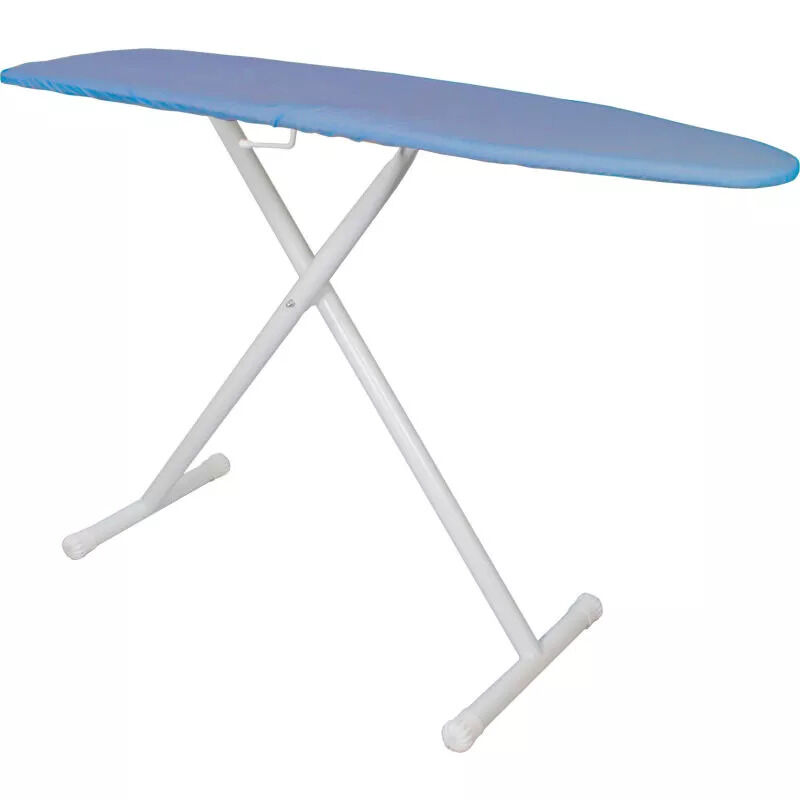 Add to your guests convenience and satisfaction with a sturdy ironing board. Standard size ironing board: 53"L x 13"W. 1-1/4" powder coated steel tube construction for the legs. Steel top provides solid ironing surface. Welded T-leg provides stability. Includes foam pad with cover.
