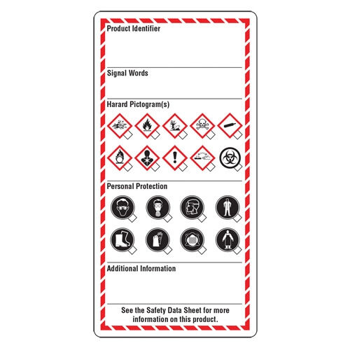 - Labels offer an easy-to-use design to correctly identify the hazard information for labeling secondary containers in your workplace