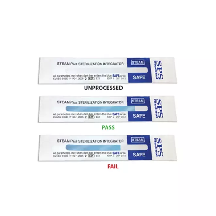 Type 5 chemical indicators as defined by the Food and Drug Administration and the International Standards Organization contain a steam sensitive material that sequentially moves across the strip into a SAFE ZONE indicating all parameters of sterilization (time, temperature, steam) have been met. The Crosstex STEAM Plus Integrator is an example of a Type 5 chemical indicator and is intended for at least once a day use and for use in every load containing an implantable device. The benefit of a Type 5 chemical indicator is the ability to provide a distinct pass/fail result providing the confidence of sterility prior to releasing the load. Think of it as an insurance policy, or sterility assurance policy . . . the more frequently used, the less disruption of potential costly recalls when alerted to biological failures.