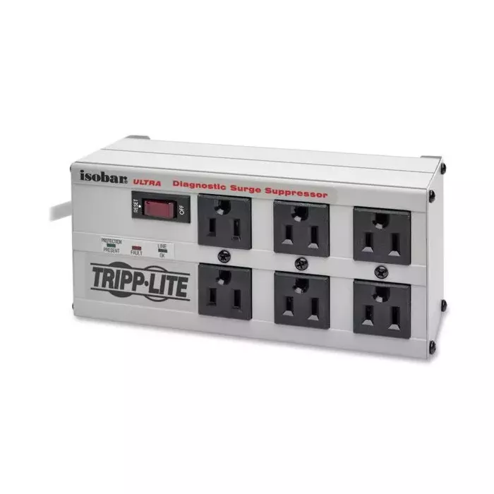 Isobar Premium surge and noise suppressor protects sensitive computer, networking and telecom equipment. Loaded with a generous combination of high-quality components, near indestructible all-metal case and unique noise filtration system, the Isobar offers a high level of protection attainable in a multi-outlet strip. Robust surge suppression circuits with sine-wave tracking offer extreme levels of protection against the heaviest surge conditions exceeding IEEE 587 category A and B specifications and reducing 6,000V test surges to harmless levels under 35 volts. Unique protection system combines large toroidal chokes, ferrite rod-core inductors, HF/VHF capacitors and multiple layers of metal oxide varistors into exclusive isolated filter banks that remove EMI/RFI interference. Four outlets are arranged in two filter banks to prevent system crashes, reboots and performance problems common as noisy system peripherals are powered off and on. Surge protector includes a 4' cord.
