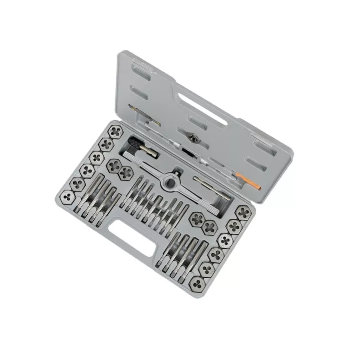 | Includes | Filière et taraud hex #4-40, # 6-32, # 8-32, # 10-24, # 10-32, # 12-24, 1/4-20, 1/4-28, 5/16-18, 5/16- 24, 3/8-16, 3/8-24, 7/16-14, 7/16-20, 1/2-20, 1/8-27 NPT, clé à tarauder réglable à long manche, tarauds en T à tige 1/16-3/16, filière hex 1", tournevi |