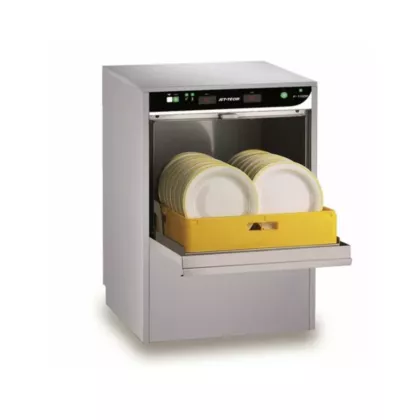 Controls: HMI touchscreen with diagnostics, auto‑start on hood close, sleep mode, door interlock, cycle counter, field convertible configurations