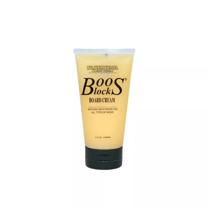 Boos Block Board Cream not only enhances the beauty of your cutting board and butcher block's color and sleek appeal, it also provides a finish that enhances longevity. Frequency of application is less than standard mineral oil. All natural. Unbleached beeswax combined with food grade mineral oil. Deeply penetrating. Moisture locking.