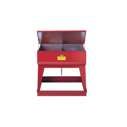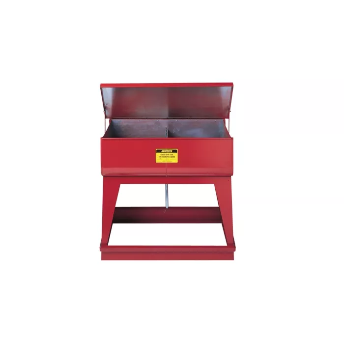 - Self-closing cover is foot-treadle operated so it can be opened by a worker with both hands full