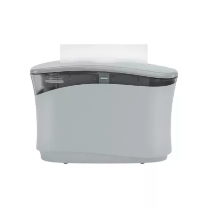 - This sleek grey countertop towel dispenser has a 15% higher capacity than competing systems, for fewer refills