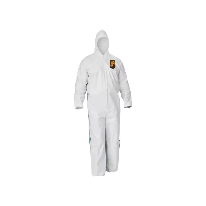 - Front and sleeves are made from a microporous film laminate antistatic material designed for protection against hazardous particles and liquids
