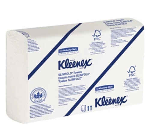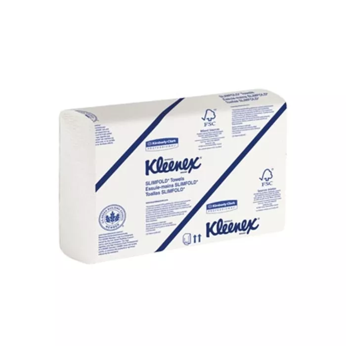 Kleenex SLIMFOLD Hand Towels are designed to provide efficient and hygienic hand drying in compact spaces. These high-quality towels are made from absorbent materials that ensure effective drying while minimizing waste. The SLIMFOLD design allows them to fit into tight spaces where typical folded towels cannot. Each package contains a substantial number of towels, making them ideal for high-traffic areas. With 24 packages per case, these towels offer a practical and economical solution for various commercial and public facilities.