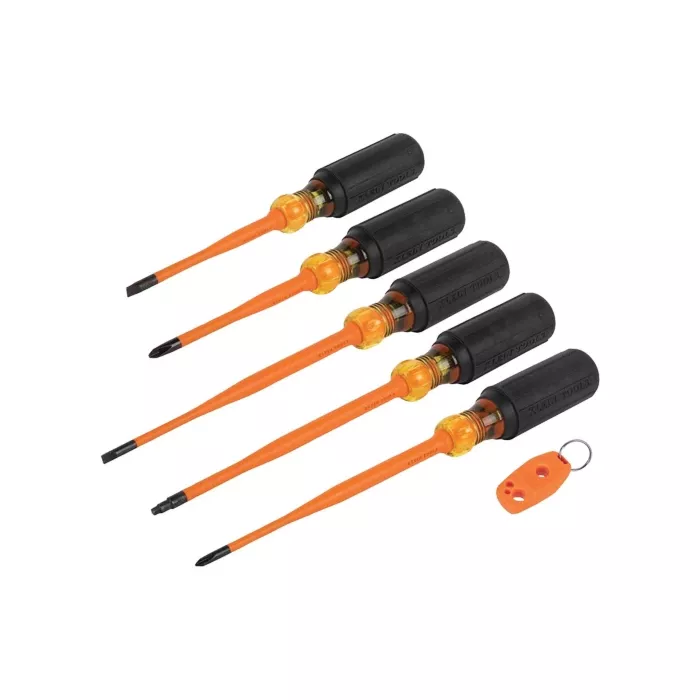 - 1000V rated insulated screwdrivers with slim-tips that allow for greater access into tight spaces