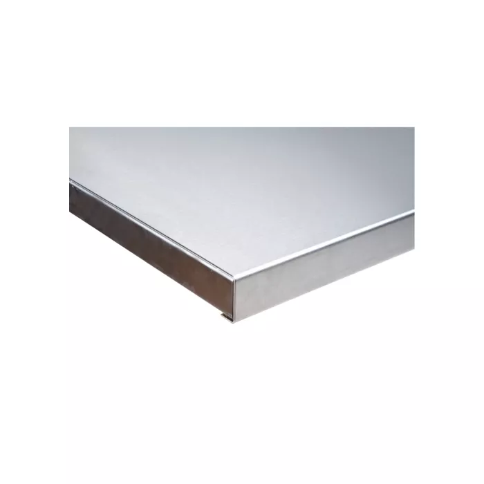 - Heavy-duty 14-gauge stainless steel with a number 4 finish and formed edges
