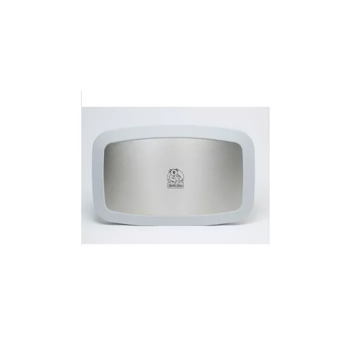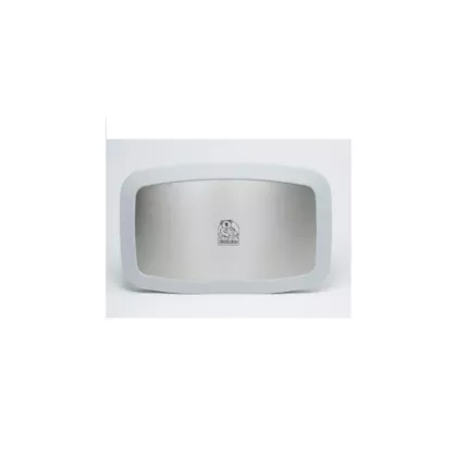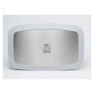 Type 304 stainless steel veneer panel integrates with other satin-finish accessories in the restroom. Constructed of polypropylene and a unibody steel chassis, this baby changing station supports 200 lbs with minimal deflection. The steel-on-steel hinge has greater resistance to wear and improved durability and the gas spring mechanism ensures smooth open and close of the unit. Its sleek design and color palette matches modern restroom design and décor. The dual liner cavity with lock minimizes operator refills and discourages potential vandalism. The product includes child protection straps and bag hooks. ASTM and EN compliant. Meets ADA requirements when mounted properly. Bed surface exclusively contains Microban® antimicrobial, reducing odor causing bacteria.