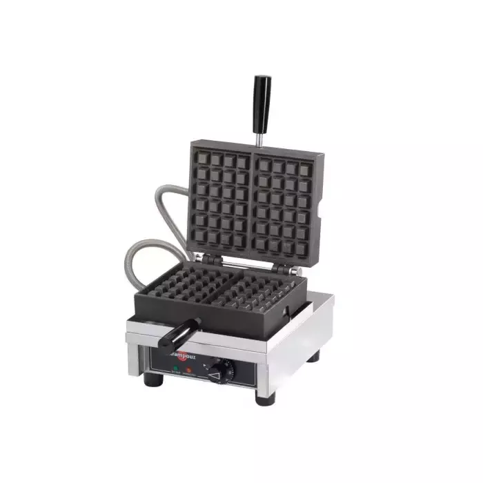 With thermostatic control and a heating indicator, you can precisely adjust the cooking temperature between 122°F and 572°F (30°C - 300°C), ideal for creating the caramelization effect of pearl sugar in Liege waffles. The stainless steel frame is built for durability and features protected controls for simple maintenance. A drip tray is also included to catch any spills, ensuring a clean workspace.