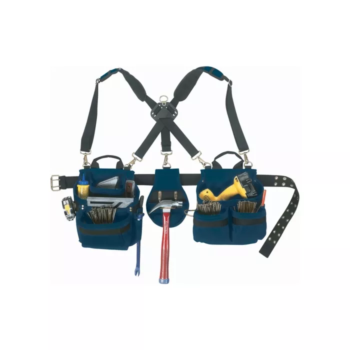 - Completely adjustable, padded suspenders engineered to hold and distribute weight comfortably evenly without strain on lower back and hips