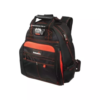 - Versatile tool backpack that comes with an integrated 3 level LED light (39 lumens) and holds a multitude of tools and accessories