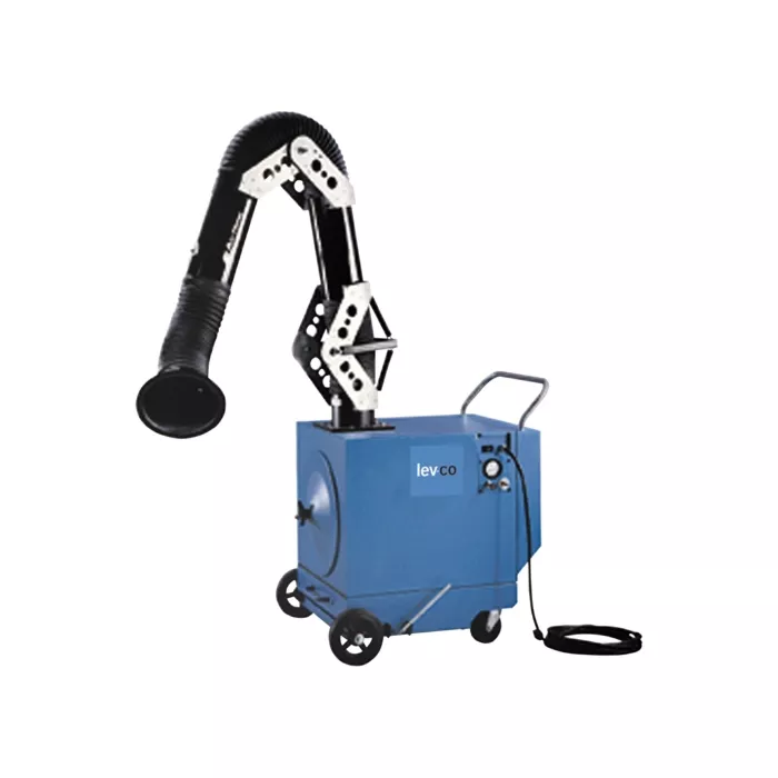- Synthetics; Dirty air enters the cabinet from the hose and is directed vertically downward which results in a 180° turn at the bottom of the unit, causing separation of heavier particles into the removable dust pan. Second stage cartridge filter, traps the remaining particles with up to 99% efficiency.; Specifications:; Construction: 16-gauge steel cabinet finished with 2 part chemical and oil resistant paint. Includes Ultra-Seal® filter mounting system, removable access door to filters and direct drive motor/blower, 6.7' externally self-supporting E-Z Arm ™ high flow pickup arm, 8" fixed front and 5" rear swivel casters, power cord and on-off switch.; Weight:255 lbs. Shipping weight 400 lbs.; Airflow:1200 CFM with 1.5 HP motor ; Noise:70 dBA / 73 dBA 1.5 HP; Electrical:1.5 HP 115/1/60; Filter Seal:Ultra-Seal® with positive sealing filter locking mechanism for all main filters, optional HEPA filter and adsorber modules (when used). Slide tracks shall be used for prefilters only.