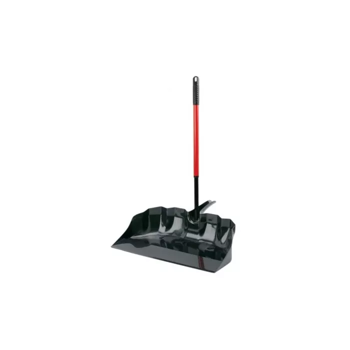 Extra wide dust pan opening fits large brooms.