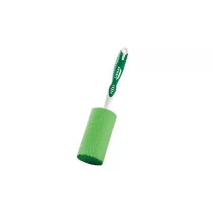 - Unique sponge on a handle that makes it easy to clean narrow and delicate glassware and dishes.