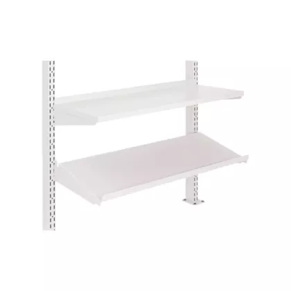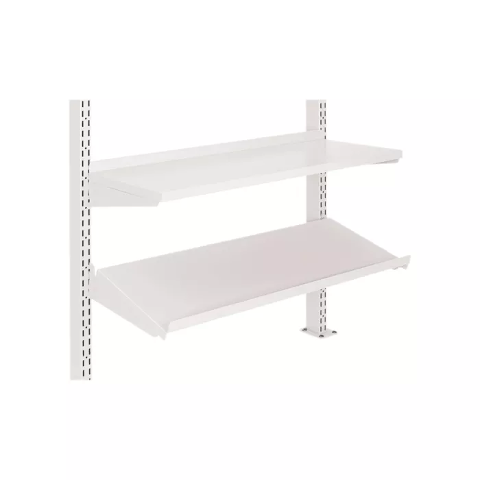 - Adjustable, heavy gauge steel shelves can be mounted parallel to the work surface or at a 15° angle for easy ergonomic access