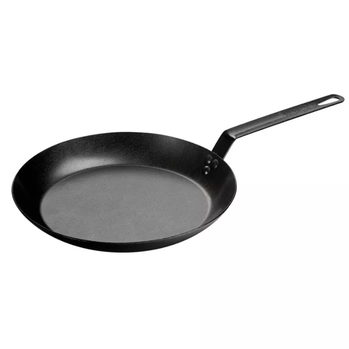 If you're entertaining or feeding your family, the 12 Inch Carbon Steel Skillet has you covered. It's big enough to sear multiple steaks or make a one-pan meal. From your stove to a restaurant range, this pan can handle the heat in any kitchen. Its lightweight design and long, comfortable handle makes it easy to maneuver from the stove to the table. Seasoned and ready to use for an easy-release finish.