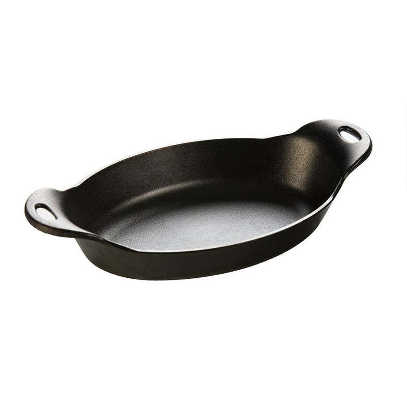 The perfect size for any side dish, this 36 Ounce Serving Dish keeps food hot from oven to table. Made with a patented heat treating process that inhibits rust, this mini server is commercial dishwasher safe.