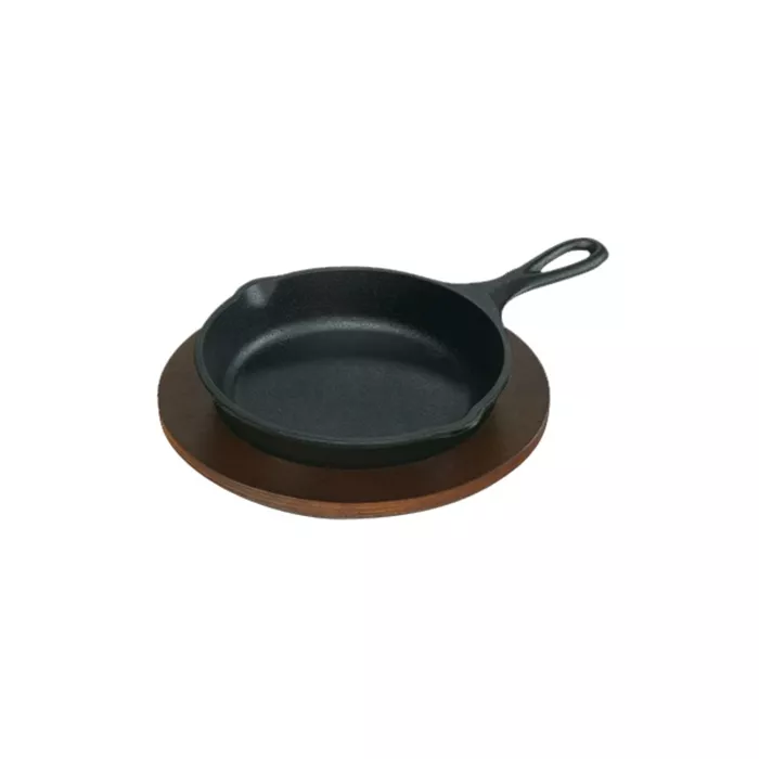 Enhance your serving griddle's appeal while protecting tables and countertops with our wood underliners. Constructed of 3/4" thick cold forest hardwoods. Finished with water resistant oil and/or lacquer. Made in USA. 8" dia., 3/4" height. 6.5" Skillet 644/L3SK3CN sold separately.
