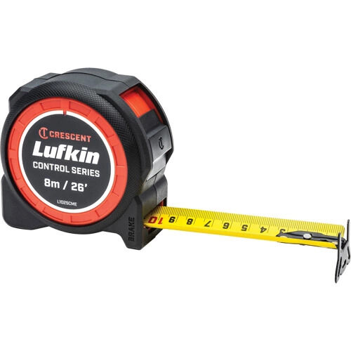 - The finger brake beneath the tape’s feed allows the user to control the blade without risk of pinching, and the blade can be locked in place with the wide lock button protected by over-mold rails