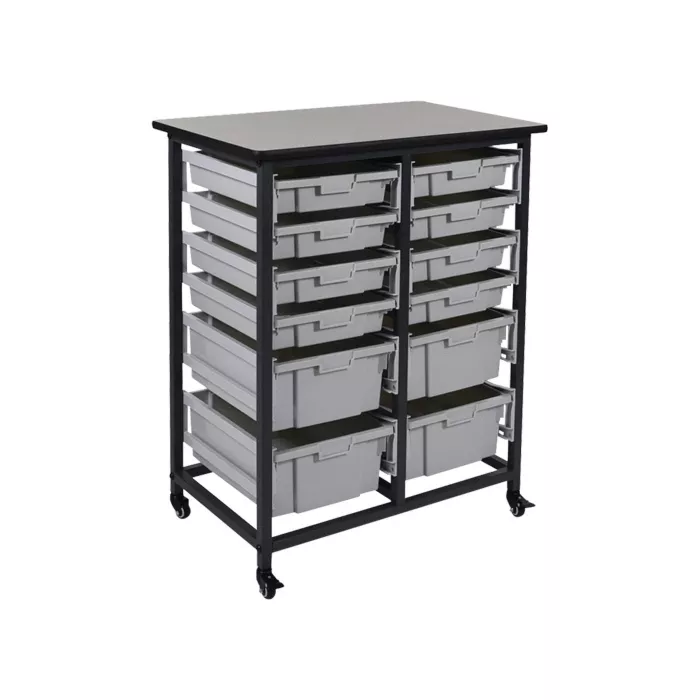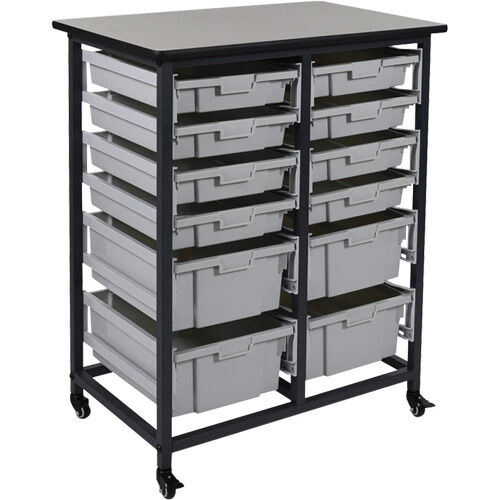 - Organize and stack supplies in eight 3"-deep and four 6"-deep tubs