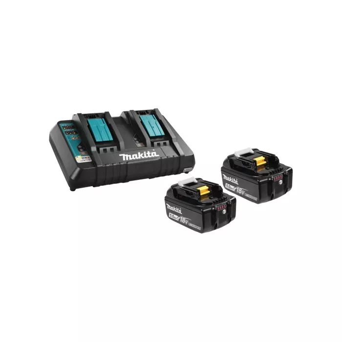- Includes: (2) 18 V Li-Ion Batteries, (1) Dual-port rapid charger
