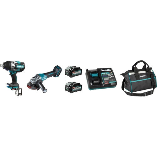 | Includes | (1) 3/4” Cordless Impact Wrench with Brushless Motor, (1) 5” Cordless Angle Grinder (Paddle Switch) with Brushless Motor, (2) 40V Max (4.0Ah) Li-Ion Batteries, (1) Rapid Charger, (1) Tool Bag |