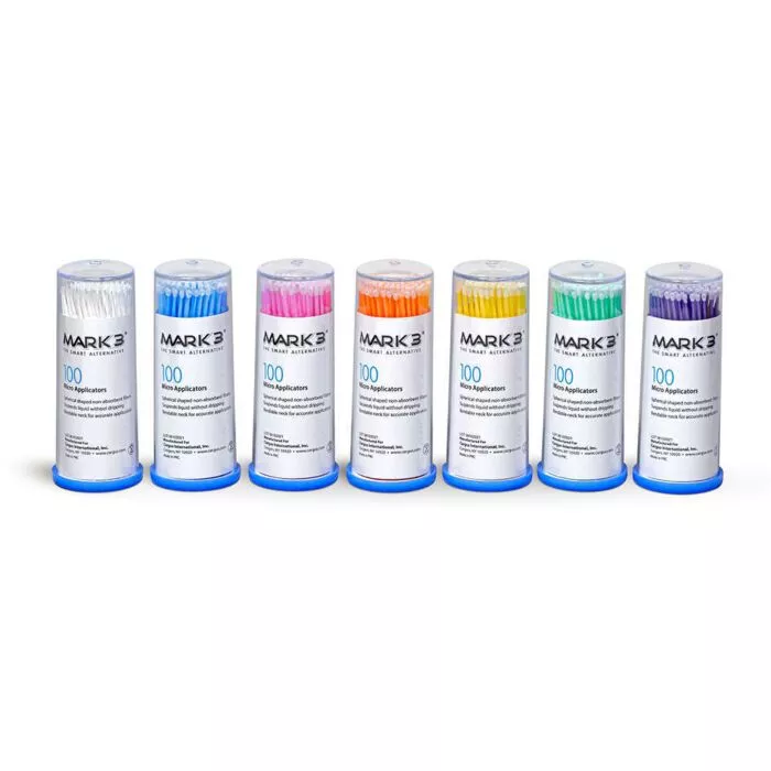 Disposable Micro Applicators from MARK3 are designed for precise placement of dental materials such as, bond, etch, cavity liners, hemostatic agents, sealants and disclosing solutions. The non-linting, non absorbent fibers suspend material without dripping, minimizing waste.