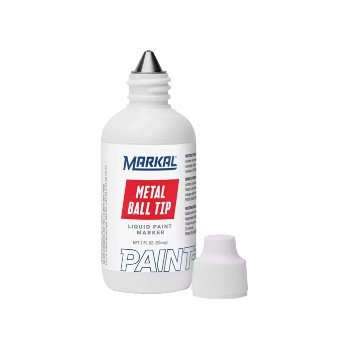- Durable metal-ball tip resists wear and clogging for long-marking life on rough surfaces