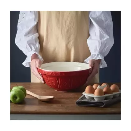 Stir some colour into your kitchen with the Mason Cash Colour Mix mixing bowl range. The Red S18 (26cm) 2.7L mixing bowl retains the charm of Mason Cash classics whilst bringing a bright, vibrant palette to any kitchen. Made from chip resistant earthenware, the bowl counters the tendency to move during manual mixing and the patterned exterior helps grip the bowl.