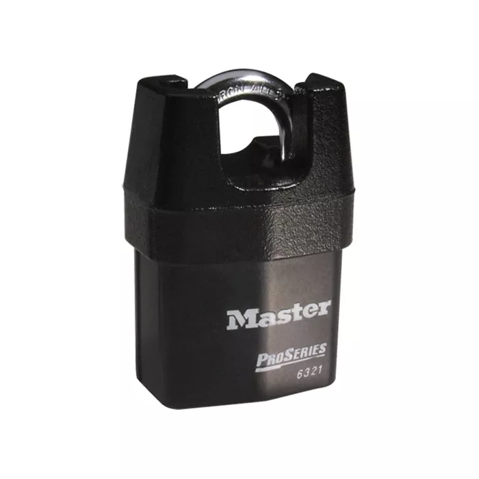 - Iron shroud protects shackle from bolt cutters and dual ball locking mechanism resists pulling and prying, while the heavy-duty laminated steel body contruction withstands physical attacks