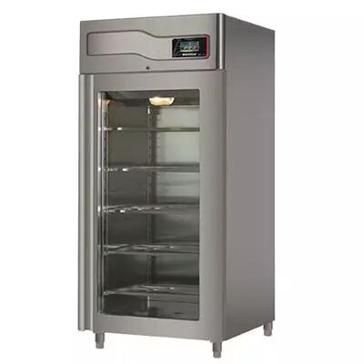 - Comes with automatic internal lighting, height adjustable legs & industrial refrigeration unit (No mono-block), dehumidifier, optional air exchange, heated frame, hot gas defrost, 5+5 stainless steel AISI304 guides sets, 5+5 stainless steel AISI 304 racks, 2 stainless steel AISI 304 door with 2 large glazed glass