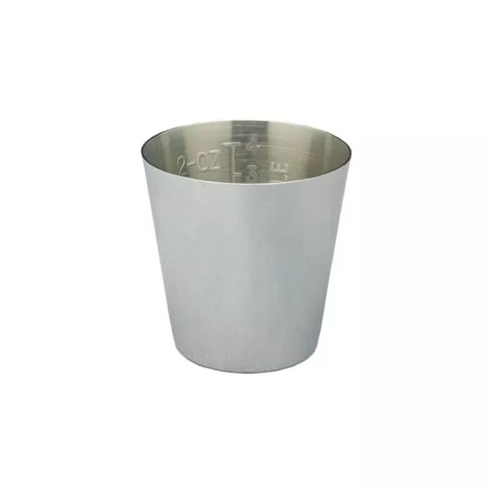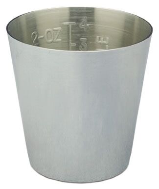 Medicine cup, 2 oz (59 ml), graduated. Made in stainless steel.Diameter: 2†(5.1 cm)Height: 1 3/4†(4.45 cm)