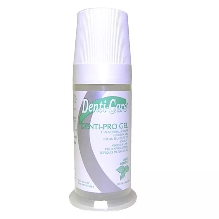 Medicom DentiCare Neutral Fluoride Gel 1.1% Mint 2oz is a dental gel that helps prevent tooth decay and strengthen tooth enamel. It contains 1.1% sodium fluoride, which is a mineral that can be absorbed by the teeth and can help protect against cavities. The mint flavor helps leave a fresh taste in the mouth after use. This gel is easy to apply with a brush or applicator and is ideal for those who may have a sensitivity to stronger fluoride concentrations. Use as directed by a dental professional for optimal results.