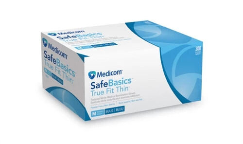 Medicom Safe Basics True Fit Thin is aNitrile Chemo-tested Medical Examination Glove with Textured Fingertips. It is powder and latex-free.