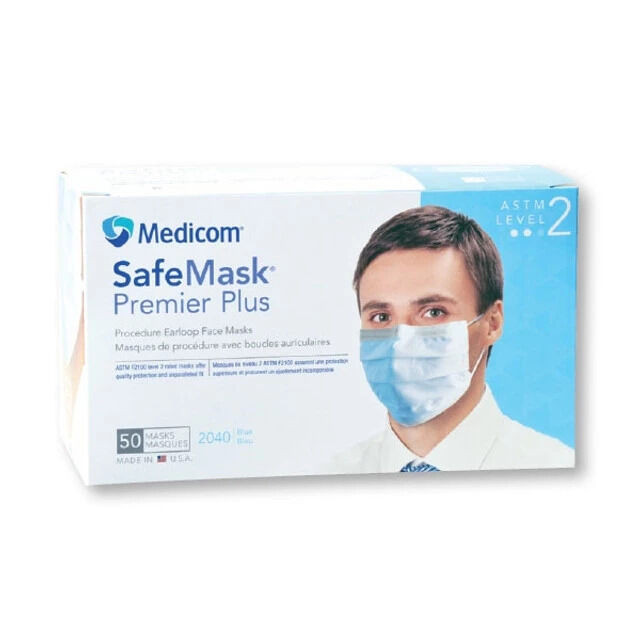 Introducing the Medicom SafeMask Premier Plus Earloop Face Mask in Level 2, Blue, 50/box. These masks combine exceptional comfort with reliable protection, making them an ideal choice for various medical and dental procedures.